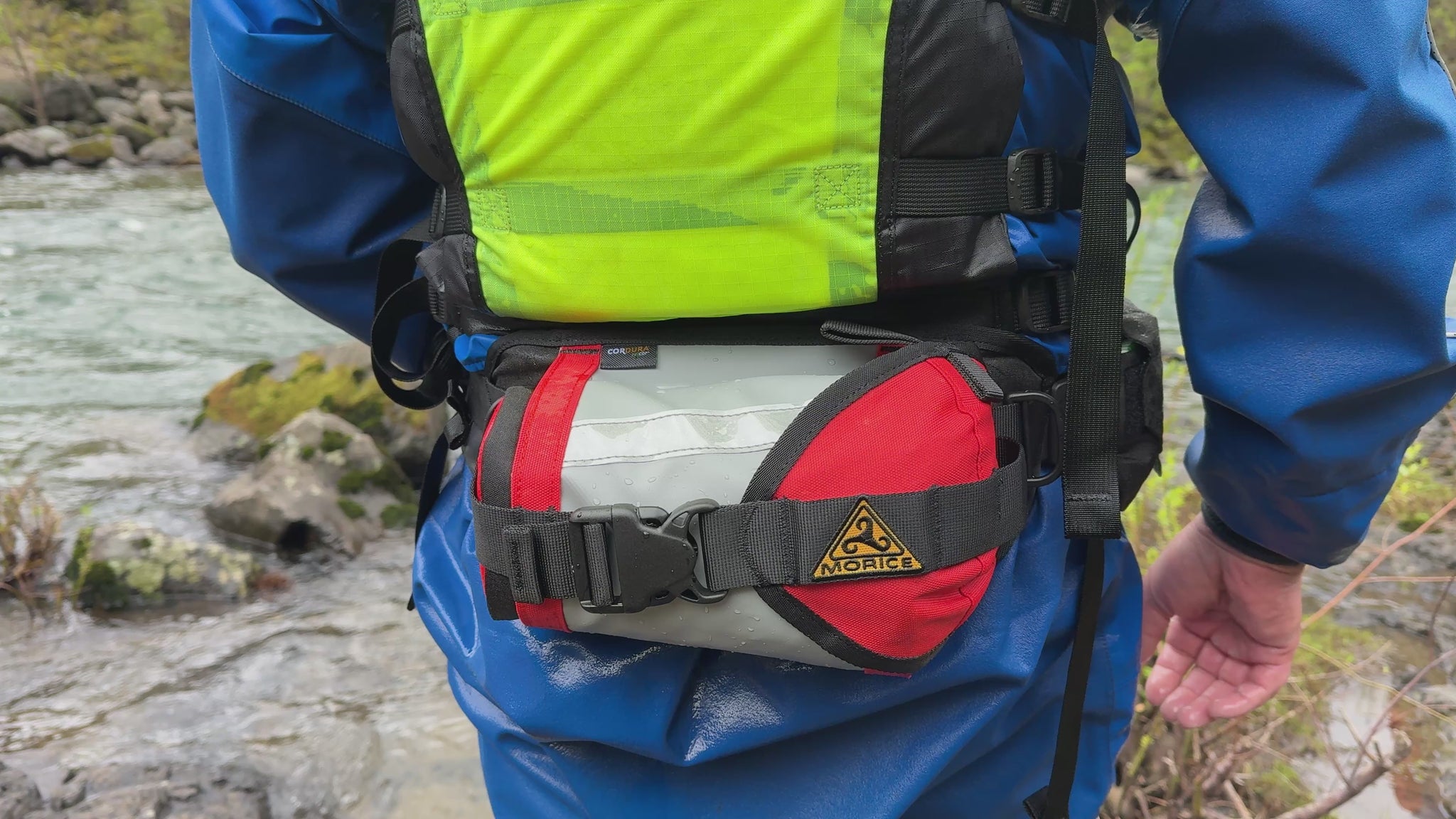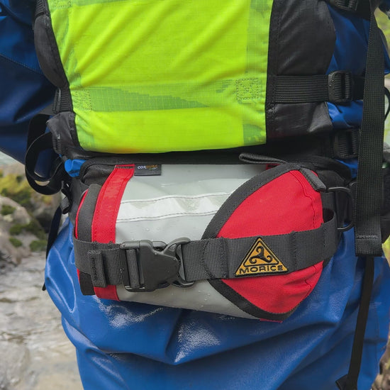 This river rescue belt system is the original modern waist belt throw bag and comes standard with a removable flip line pocket.