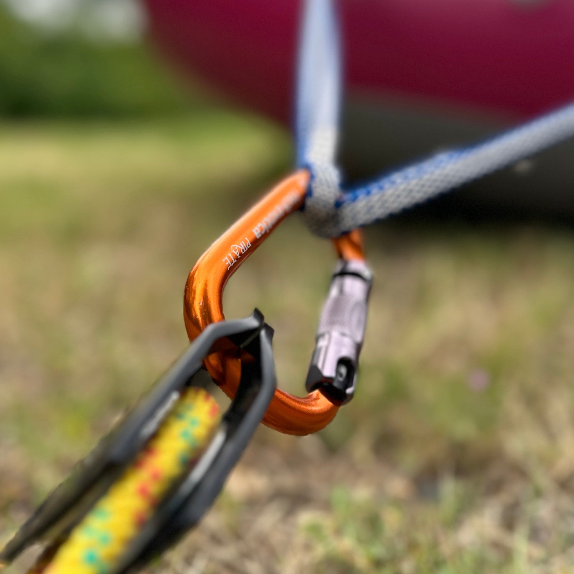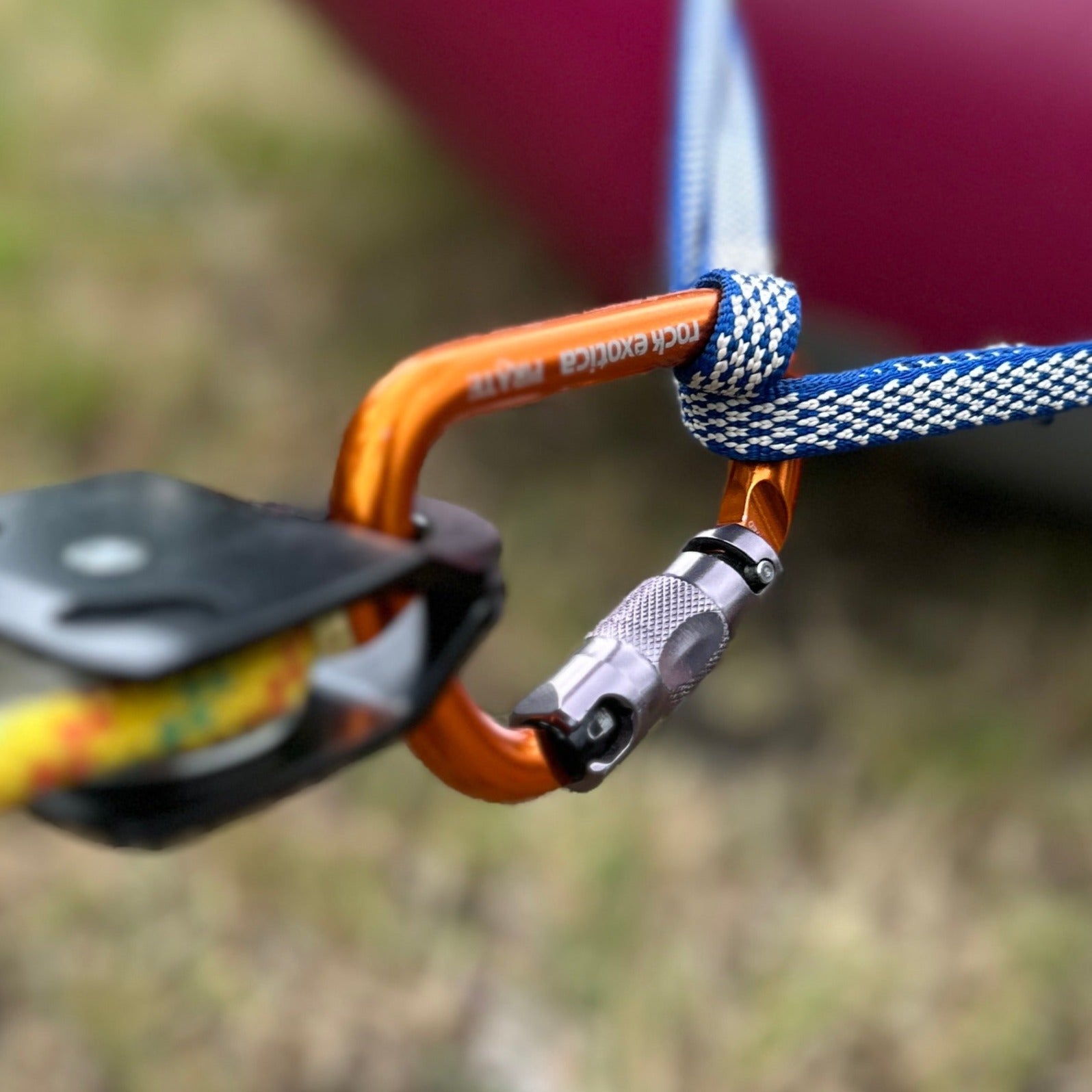 These HMS locking carabiners have a robust 0.5" diameter frame that make them both easy to work with and durable. The innovative angled gate opening is snag resistant making it great for rope work or clipping gear into your raft.