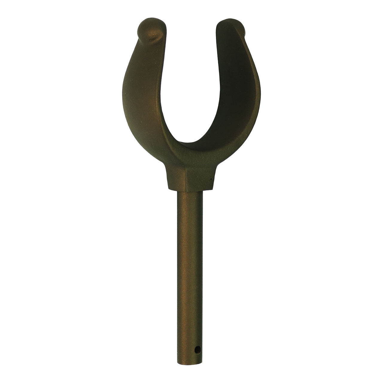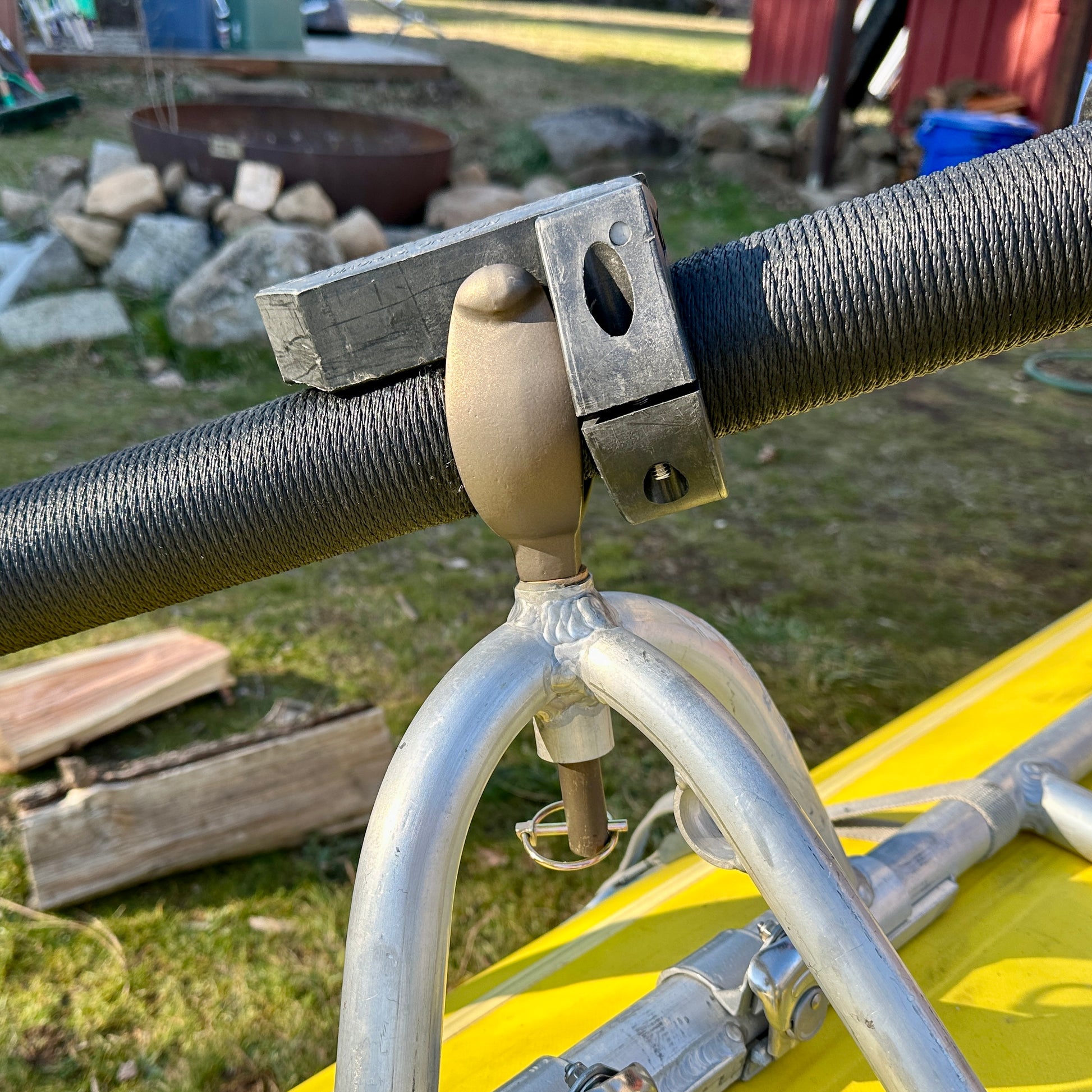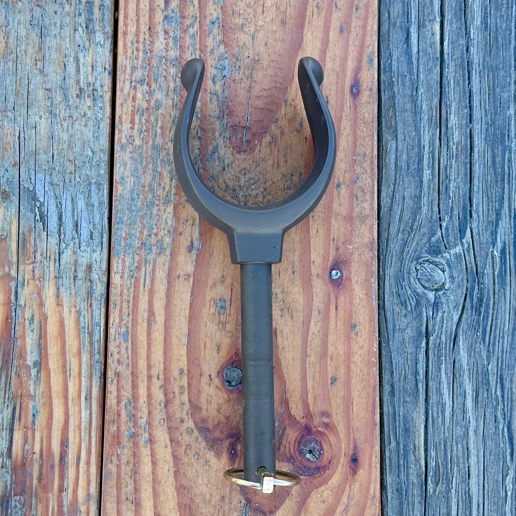 As a starting point, the oarlocks are adjusted or “tuned” so the gap between the horns is 1 ¾”. A good rule of thumb is the gap should be ½” less than the diameter of the oar and sleeve at the base of the stopper; therefore, they come set up for 2 ¼” diameter oars. That gap can be narrowed or widened to fit your oars (yes, you can pound on them with a rock). The shaft is turned to ⅝” diameter to work with most frames. A ¼” hole is drilled through the shaft 3 ¼” down allowing for the most common 3” long bearing or sleeve. You will always want at least one washer between the oarlock and its mount.