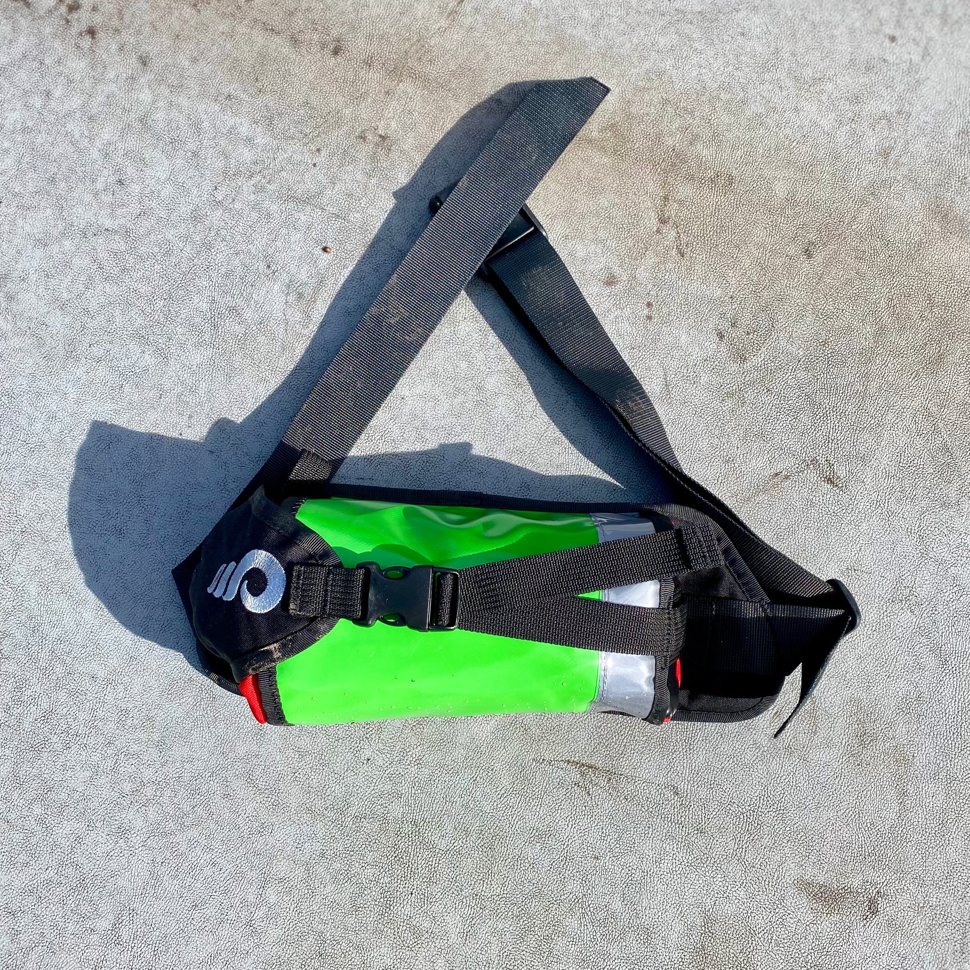This modern waist belt throw bag has a strong floating rope appropriate for swimmer rescue and equipment retrieval.